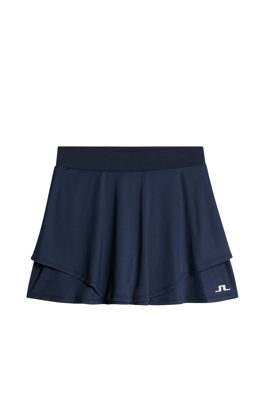 J.Lindeberg Milly Skirt Dynamik trifft Design in JL Navy Der Milly Skirt von J.Lindeberg vereint sportlichen Esprit mit moderner Eleganz. In der klassischen Farbe JL Navy passt er perfekt zu jeder Golfgarderobe und macht nicht nur auf dem Fairway sondern auch im Clubhaus eine hervorragende Figur. Sein leicht ausgestellter Schnitt sorgt für eine feminine Silhouette während das dehnbare Funktionsmaterial optimale Bewegungsfreiheit bietet ideal für dynamische Schwünge und lange Golftage. Die int…