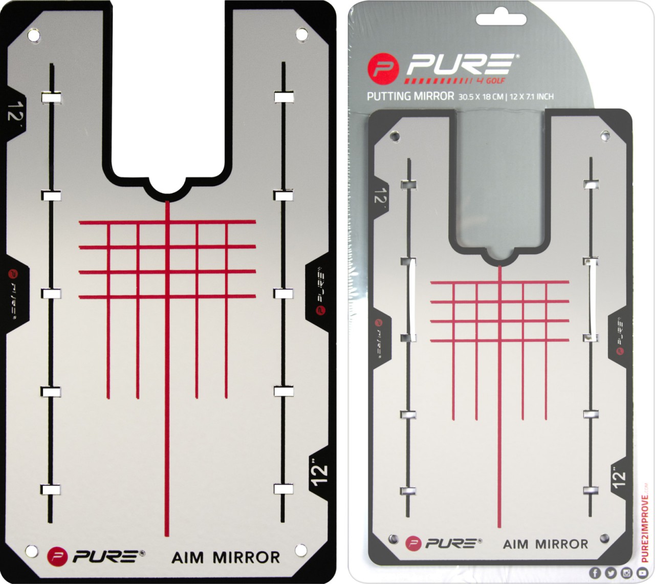 Pure2Improve PuttingSpiegel 12 Zoll. Der Pure2improve Putting Spiegel bietet das ideale Feedback und visuelle Hilfen um Ihre Ausrichtung der Schultern und Körper und sogar Ihre Augen Kopfbewegung während des Schlags zu verbessern. Verwenden Sie das Raster für einen perfekten Schlag verwenden Sie Tees in den Schlitzen (nicht enthalten) um Übungen zur Verbesserung des Schlags zu erstellen. Kann auch im Freien verwendet werden. Ideal in Kombination mit anderen Pure2Improve GolfTrainingsgeräten.