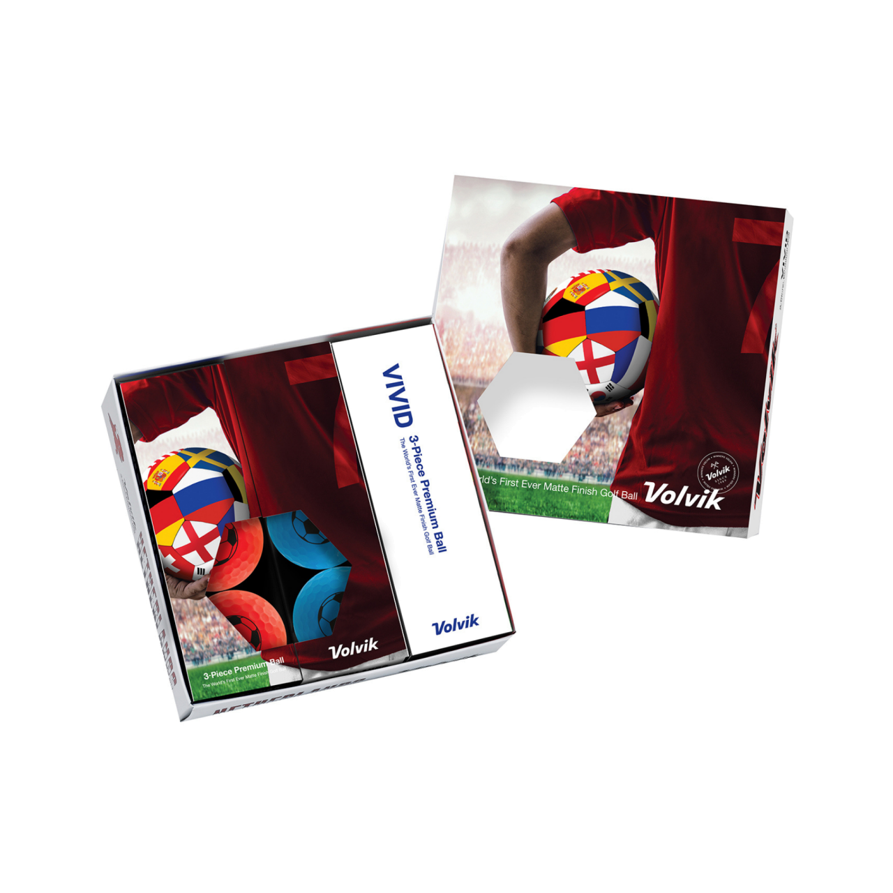 Exklusive Limited Edition Golfbälle von Volvik. Die Bälle gibt es in rot und blau mit FußballAufdruck in einer schicken Geschenkbox.